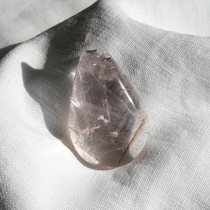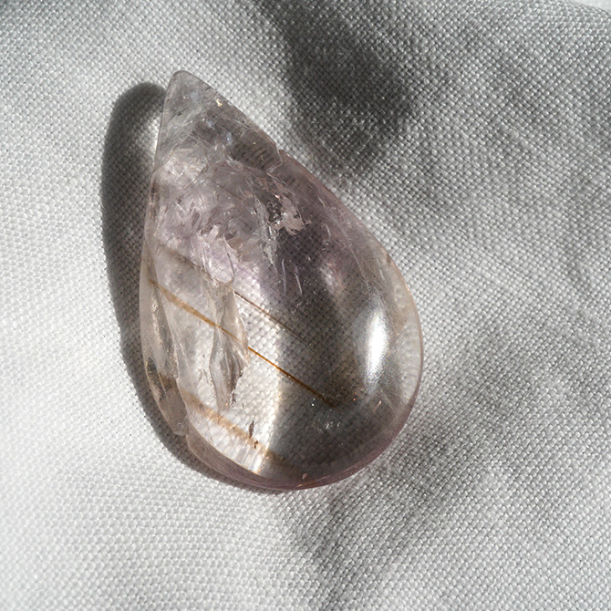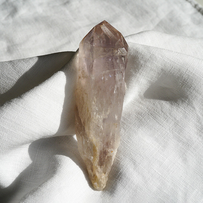 私の印象ですが、塩原氏のところからきたホワイトアメシストについて、私は感情のバランスをとるために使うことが多いです。例えば、心細い時のお守り、傷ついた時に話を聞いてもらうように癒やしてもらうといったようなことです。ハートにあたたかいものを、多重のオーラの層に感じられる便利な石のように思っています。
