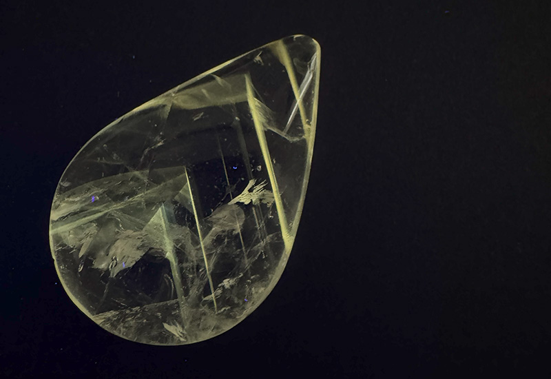 このファントムが黄色く蛍光するのですが、「ゴールドに輝くファントム」と表現されていました。下記のことについてはパウエライトについての記述ですが、見た感じから受けた印象に近いように思うので、その力はあるのかなと感じます。