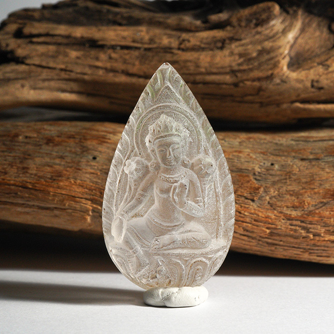 とても穏やかに微笑んでいるグリーンターラー像です。もちろんガウリシャンカールから彫り出されています。大きな原石が少ないので貴重です。