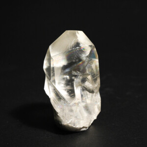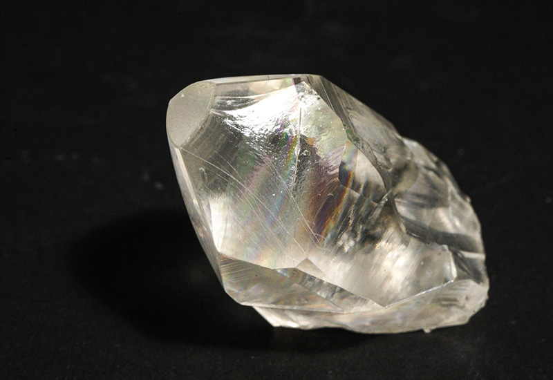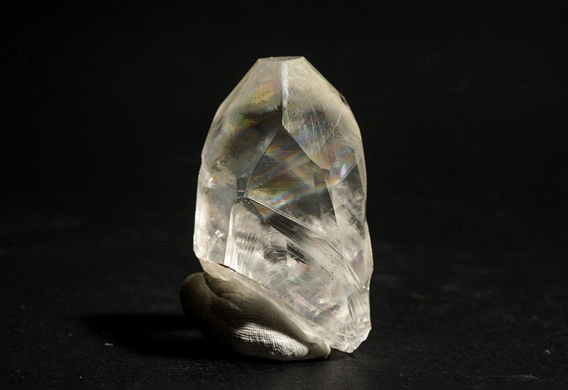 そして内部の虹はオプティカルクリアーカルサイトのように多次元感があって面白いです。水晶の虹とはまた違った味わいですが、これがクラック面に出ているので、扱いを丁寧にしなくてはと思いますね。モース硬度は柔らかめの3です(ダイヤモンドが最高硬度の10、水晶は7)
