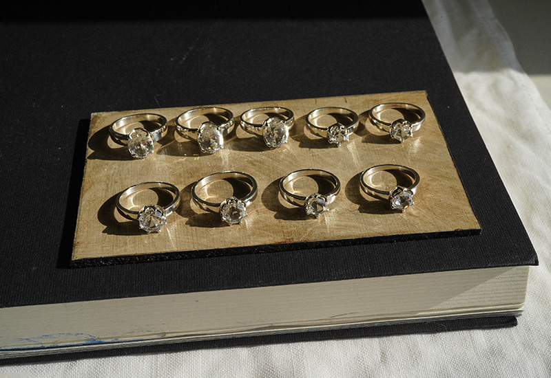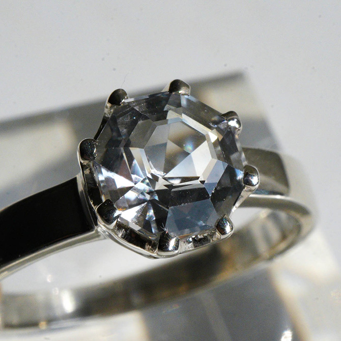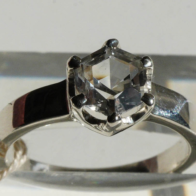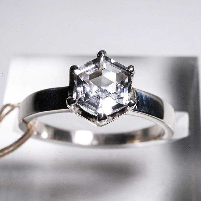 カットもブリリアントカットではなく、六角形と八角形、そしてオーバルのカットになります。