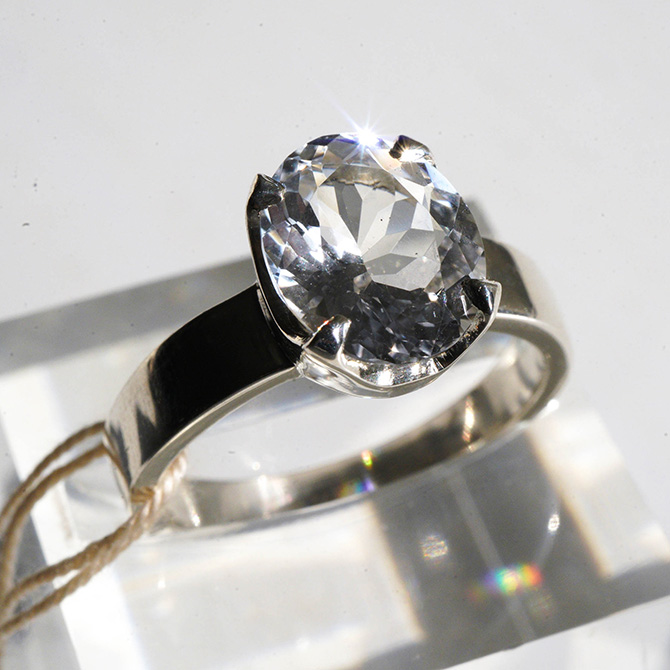 普段はまるっとしたカボションの、水の雫の表面を見るような水晶の輝きに癒されていますが、直線的で七色に分光した輝きを見たい時があります。曲線と直線、それぞれが気持ちよく感じるときがあるのかもしれません。