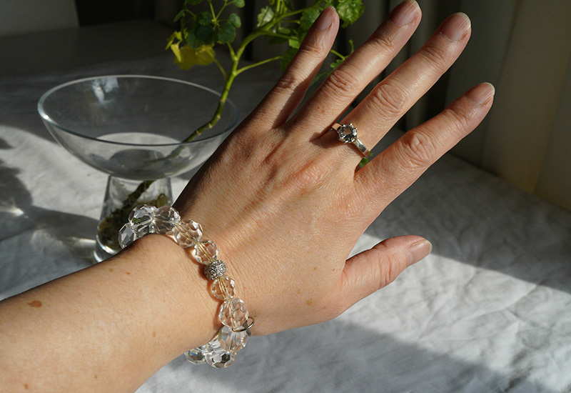 カット水晶のブレスレットに指輪もあわせて着けたいものの、カボションだと合わないな…ということで指輪もカットものも持っておきたいと思っていました。