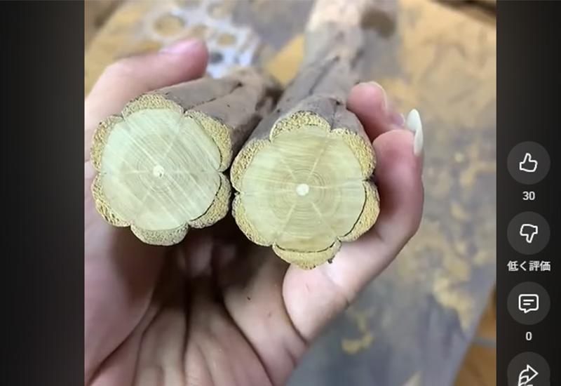 YouTubeショート動画「六道木又称降龙木,以六道纹路而闻名四海,你会喜欢吗#以木会友 #盘它」より。木の過去世がある身としては動画の途中でイタタ…となりました笑。