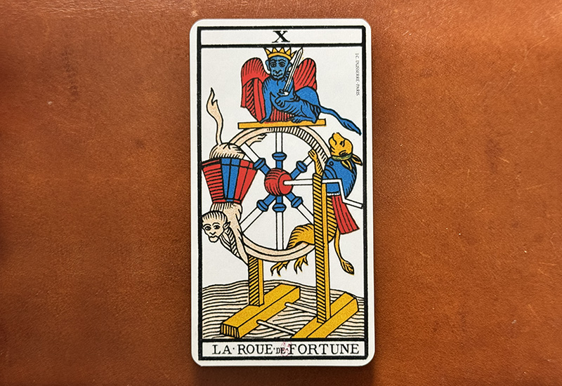 マルセイユタロットの勉強にて、カップの6が「過去」というタロット内唯一の時間概念示唆の意味を持つということの説明で「6は時間の概念につながっている数字である」という解説がありました。運命の輪のカードには時間が巡る様子が車輪によって描かれていますが、そのスポークは六本で描かれます。これもそのことにつながっているとのことでした。